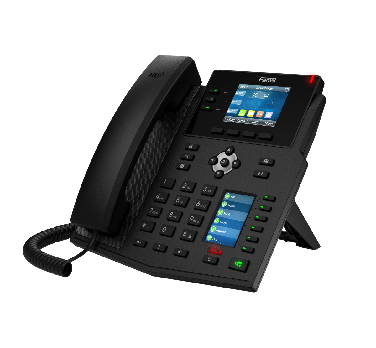 6 дополнительных программных клавиш (DSS) с трёхцветной подсветкой - Диапазон частот громкоговорителя, микрофона, телефонной трубки (0 — 7кГц)